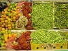 Octubre: Judías verdes, berenjenas, pimientos rojos, pimientos verdes, tomate, pepino, apio, espinacas, coles de Bruselas, calabaza, setas. Uvas, peras, melón, manzanas, peras.