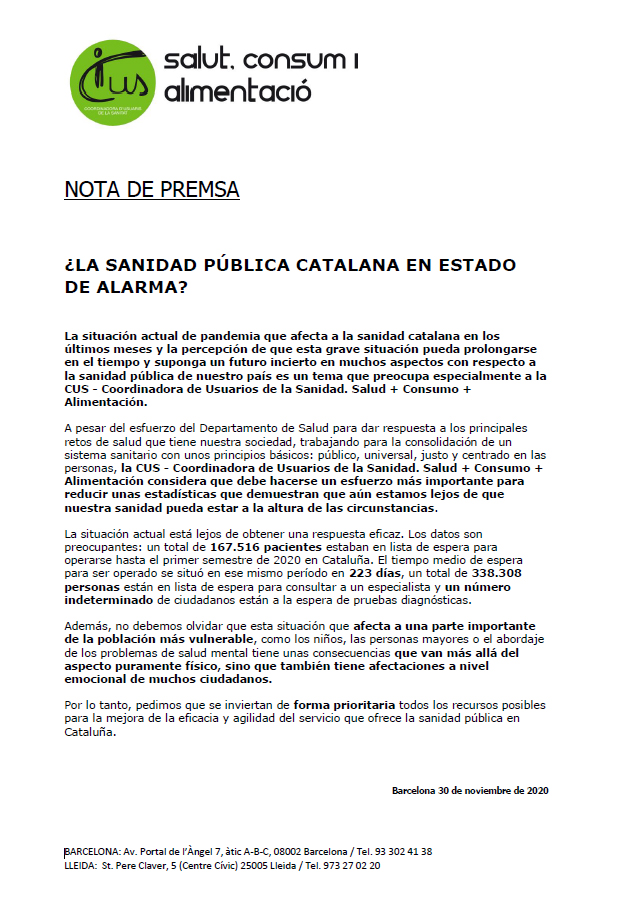 Coordinadora de Usuarios de la Sanidad. Salud + Consumo + Alimentación / ACPB