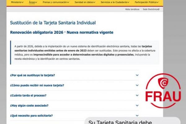 Seguidament, empra l’excusa que cal renovar la targeta sanitària abans de l’abril de 2026 i insta a fer clic a un enllaç que redirigeix a un lloc fraudulent. Allà, els ciberdelinqüent poden demanar als usuaris que facilitin dades personals o bancàries amb l’objectiu de robar-les.