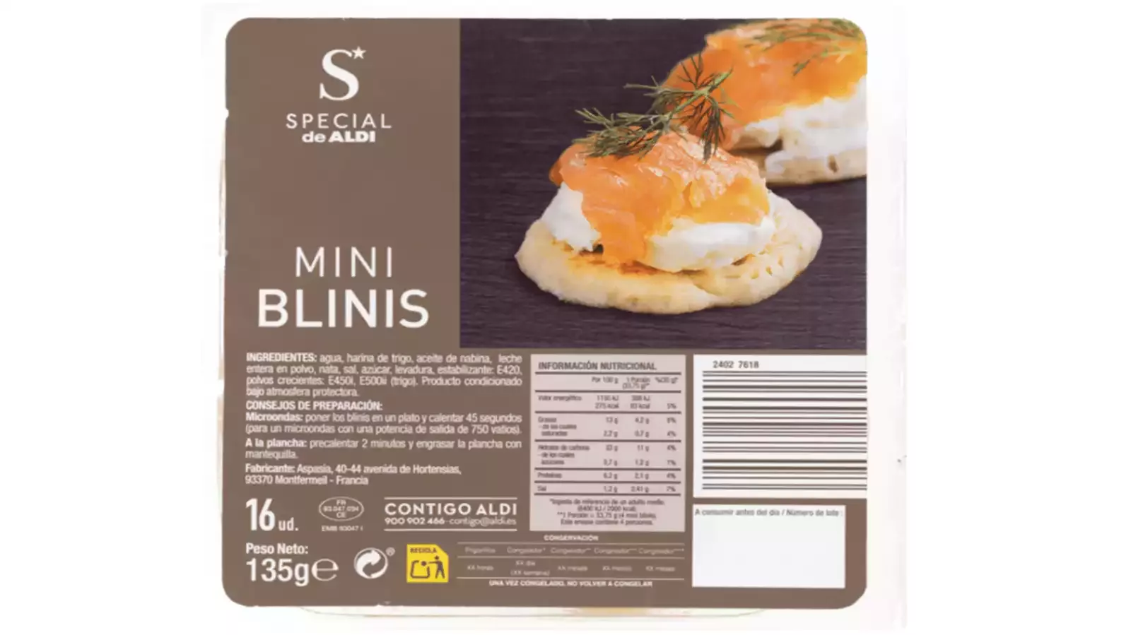 Aldi assegura que també s’ha posat a disposició de les autoritats sanitàries, “facilitant puntualment tota la informació necessària i col·laborant estretament amb elles”. El producte ‘Mini Blinis’ són unes creps per canapès fetes amb farina de blat, llet i ou.