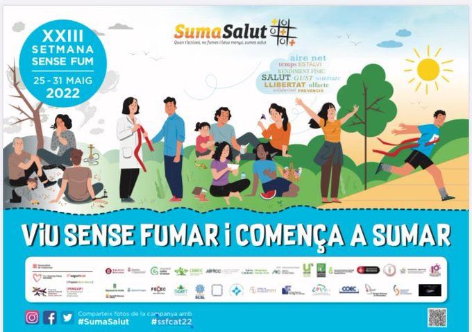 Del 25 al 31 de maig es realitzaran diferents activitats per sensibilitzar la població de la importància de no fumar.L’Agència de Salut Pública del Departament impulsa, conjuntament amb CamFiC i AIFICC, en el marc del Programa Atenció Primària sense fum,  un any més,  la Setmana Sense Fum (SSF) que aquest any celebra la seva XXIII edició sota el lema ‘Deixar de fumar i començar a sumar’ del 25 al 31 de maig. L’objectiu de la Setmana Sense Fum és sensibilitzar la població de la importància per a la salut del fet de no iniciar-se o abandonar el consum de tabac, així com poder gaudir d’un ambient lliure de fum. També s’han programat diverses activitats comunitàries, entre les que destaquen accions de recollida de burilles a platges catalanes, en col·laboració amb entitats con “No más colillas en el suelo”.