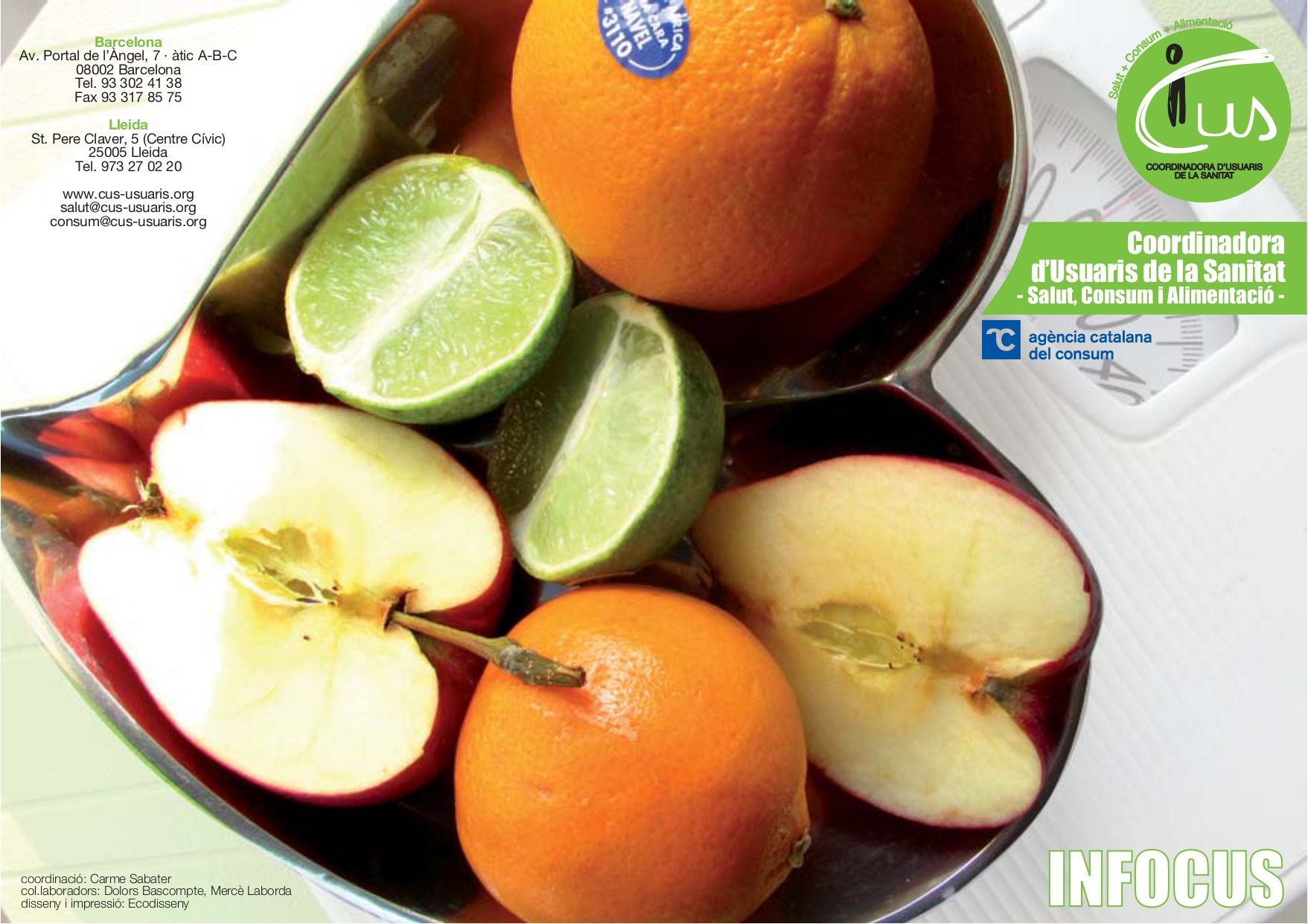 La revista INFOCUS nº 19 (2008) és una publicació de la CUS (Salut, Consum i Alimentació) que recull temes d’actualitat sobre drets sanitaris, consum responsable i alimentació saludable. El número s’obre amb una presentació que reivindica la importància del moviment associatiu i de la participació ciutadana per defensar els drets dels consumidors i usuaris, destacant el paper de la CUS com a entitat independent i compromesa amb la salut i el benestar social.
