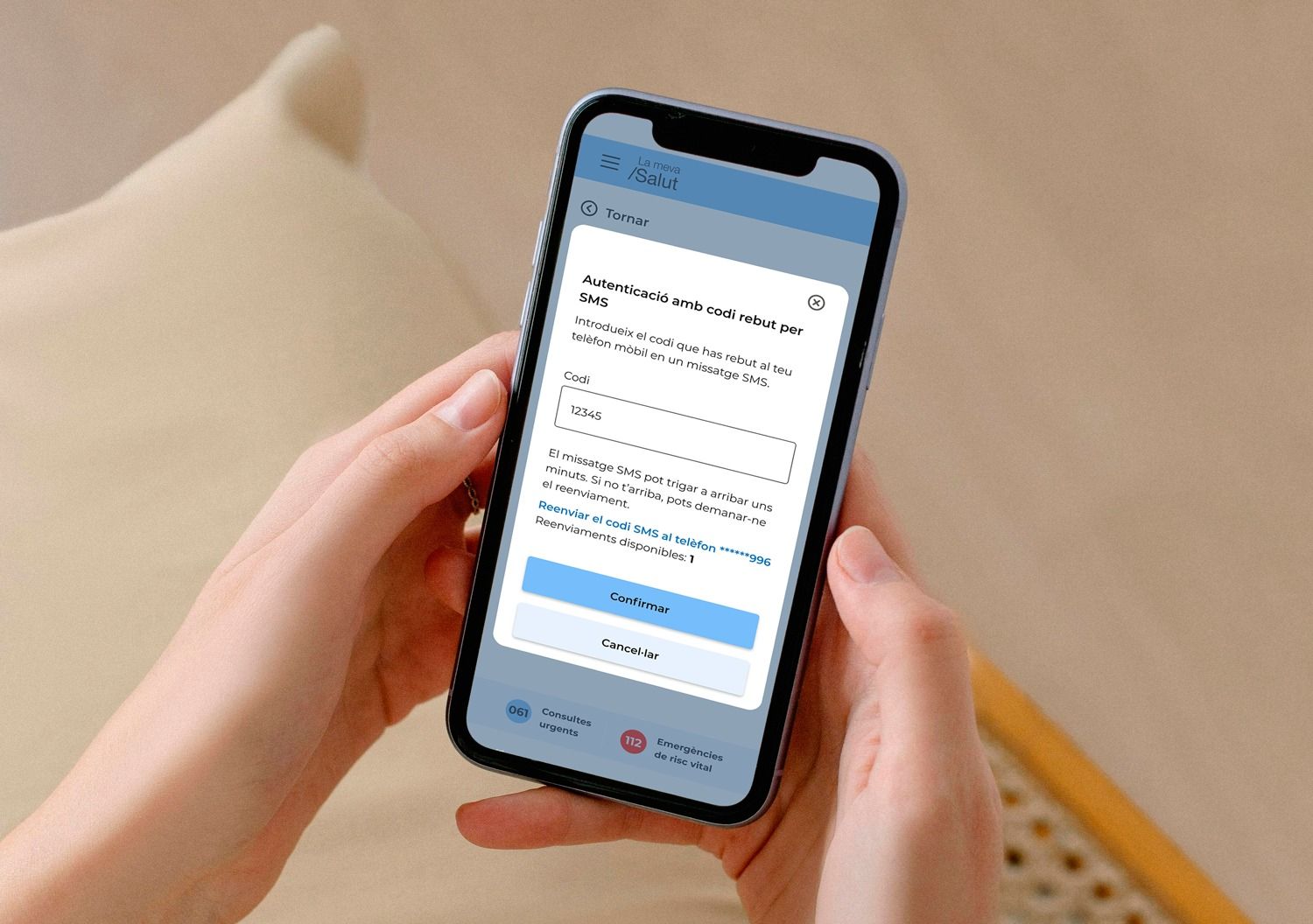 A partir de dijous, quan els usuaris entrin a La Meva Salut amb l’opció de contrasenya, rebran un codi numèric únic per SMS al número de telèfon registrat al sistema. Aquest codi haurà de ser introduït en una nova pantalla per completar l’autenticació i accedir al servei.