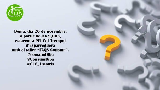 Demà, dia 20 de novembre, a partir de les 9:00h, estarem al PFI Cal Trempat d’Esparreguera amb el taller “FAQS Consum”.